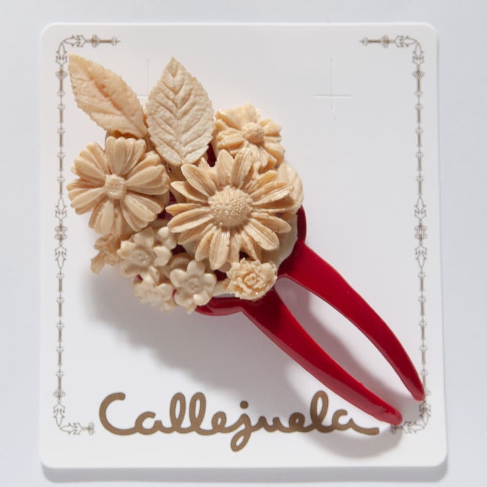 Agujón de resina color hueso adornada con flores.