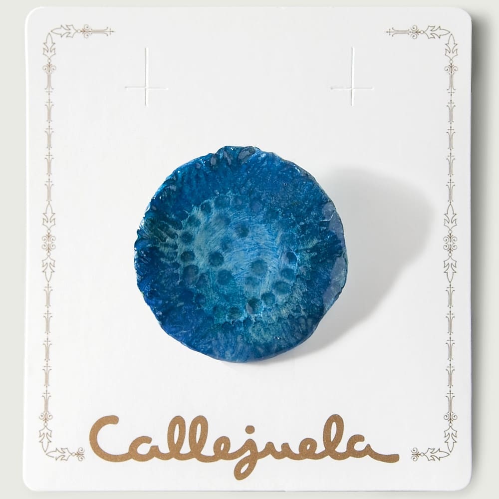 Broche de barro con relieve pintado a mano.